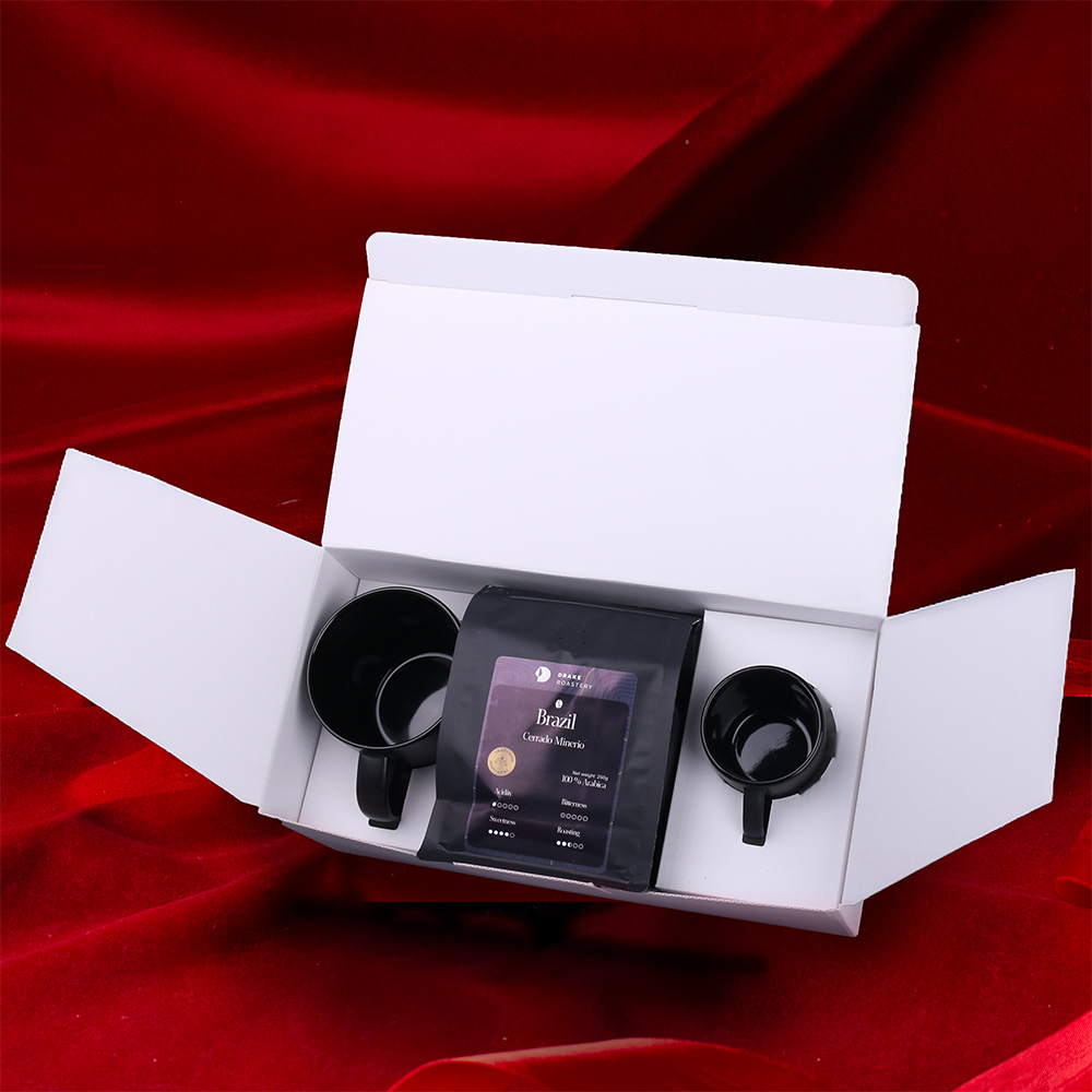 Jeden z największych hitów sprzedażowych, czarny matowy kubek Handy Supreme w towarzystwie swojej mniejszej, doskonale nadającej się do espresso wersji Small oraz starannie wyselekcjonowanej kawy ziarnistej Arabica Brazil Cerrado Mineiro. Zestaw pakowany jest w dedykowane ekologiczne opakowanie Merry. Całość opatrzona elegancką personalizowaną obwolutą. PREZENTOWANE ZDOBIENIE MA CHARAKTER POGLĄDOWY I NIE JEST WLICZONE W CENĘ PRODUKTU. ZESTAW DOSTĘPNY W DEDYKOWANYM OPAKOWANIU MERRY Z WYBRANĄ OPCJĄ ZDOBIENIA.